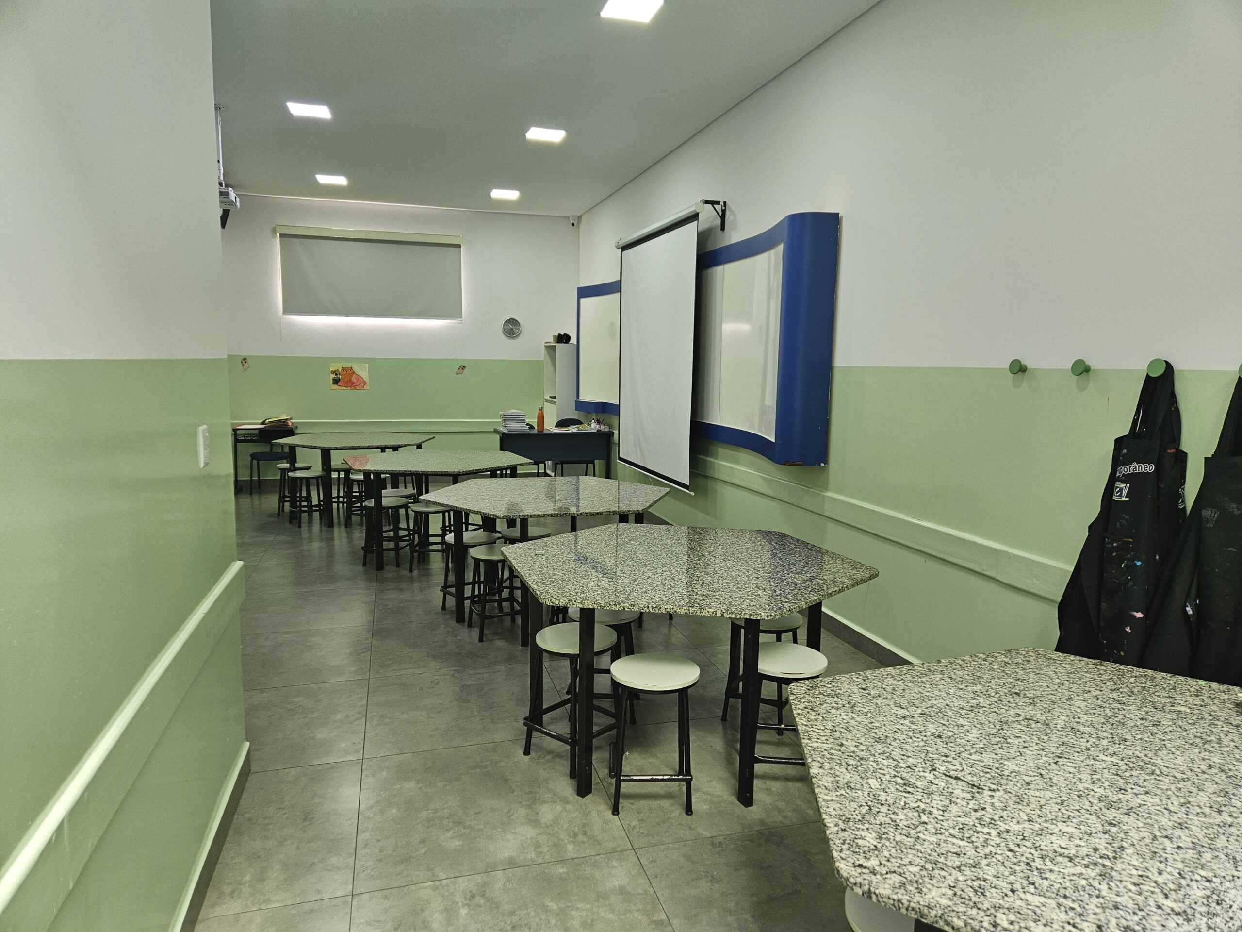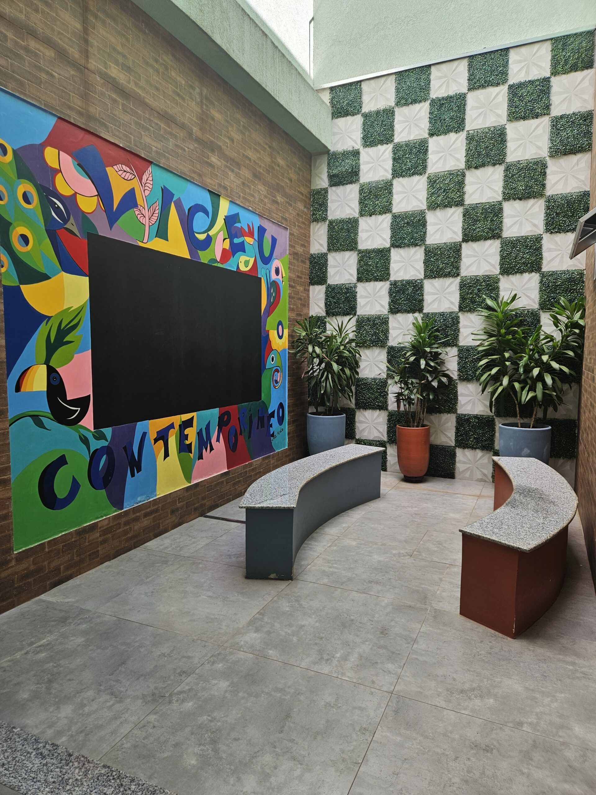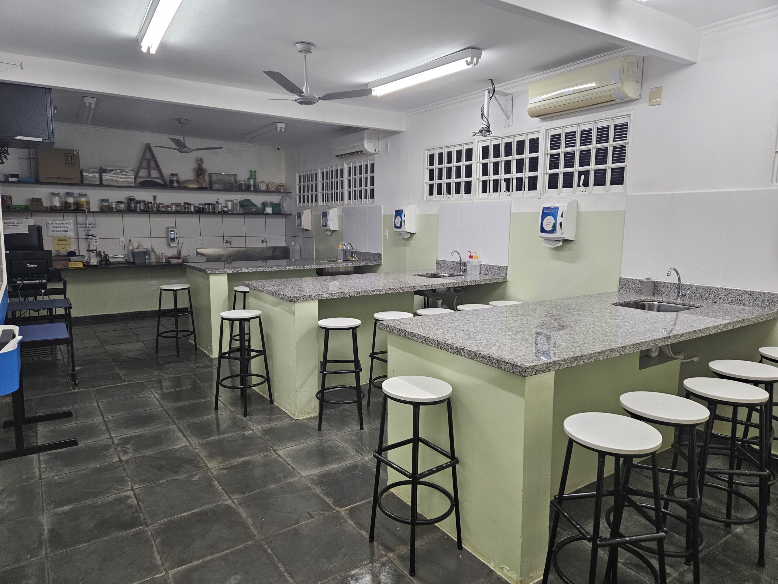 - Banheiros e bebedouros presentes em todos os ambientes;