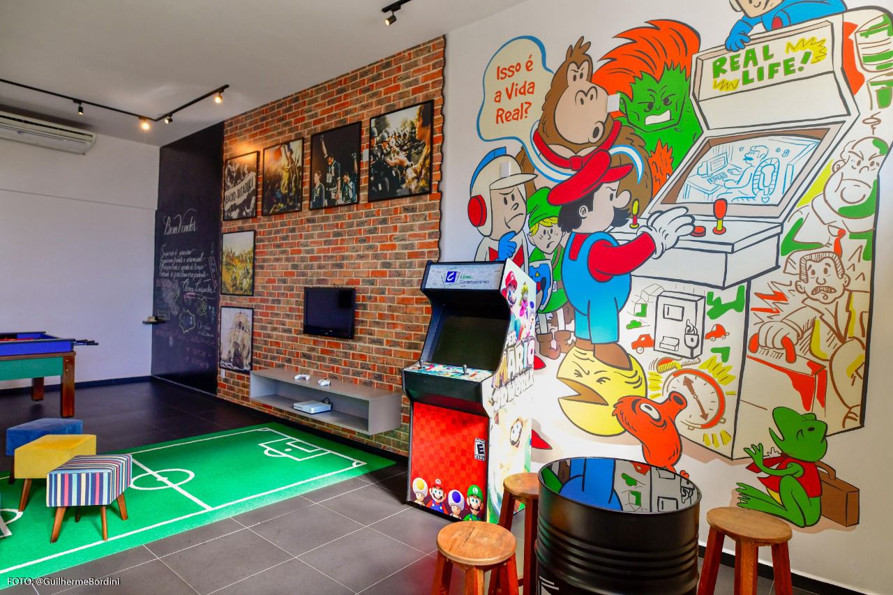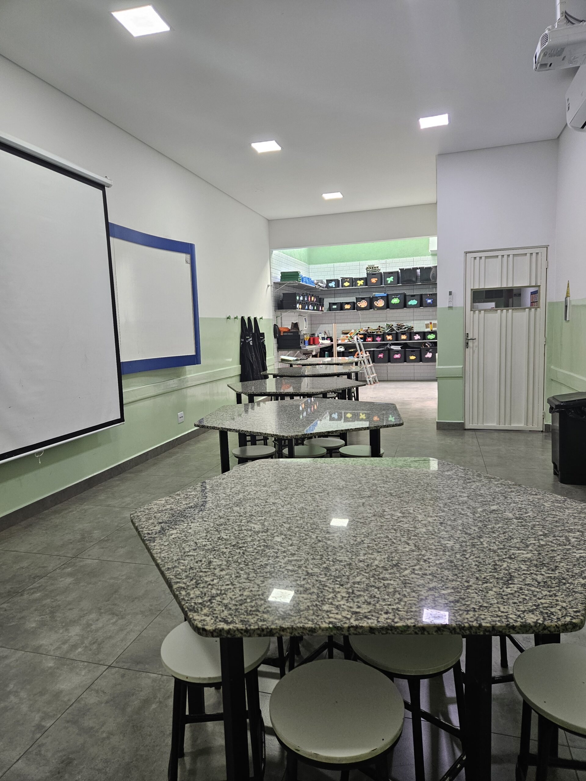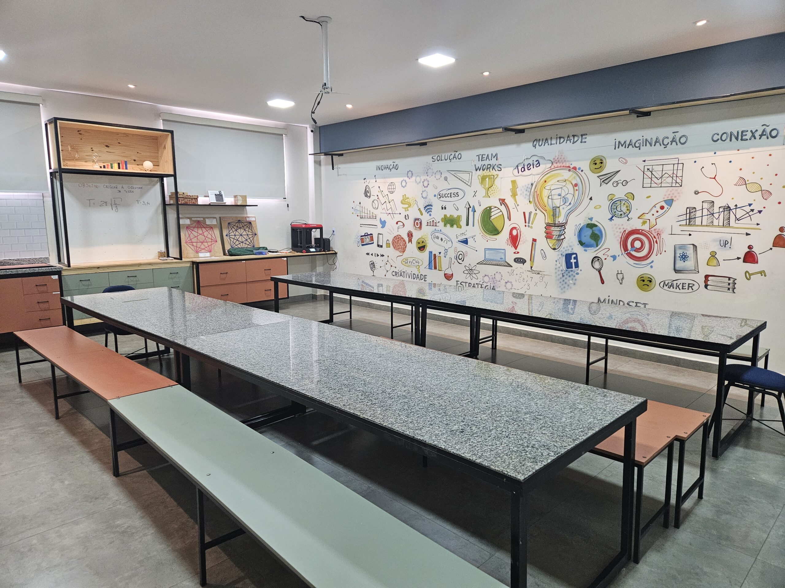 - Banheiros e bebedouros presentes em todos os ambientes;